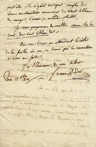 Autograph Letter Signed to Emile Deschamps, poet and author of the libretto of Roméo et Juliette, 1 page 8vo, Friday evening [27 October 1848].