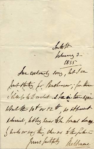 BERLIOZ, Hector (1803-1869). 'Did you really believe I'd accept anything of yours without trying to offer you something of my own in return? . I asked Taylor for two seats, which I've been carrying around in my pocket for the past four days and I now enclose. I fervently hope this concert gives you even just one tenth of the great artistic emotion which Macbeth gave me! .'He is 'so exhuasted by this morning's rehearsal that I can hardly hold the pen'.Deschamps' adaptation of Macbeth had been premiered on 2 October at the Odéon. The tickets Berlioz gave him would have been for his forthcoming concert on 29 October at the opera house in Versailles.Correspondance Générale 1233.- $1,249