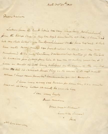 LIVERPOOL, R.B. Jenkinson, Second Earl of (1770-1828). Relating to the position of missionaries travelling to those parts of the colonies 'in the East' which were not in the territories of the East India Company.- $183