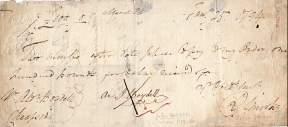 Cheque made out and signed by Hastings (in full ‘Warren Hastings’) to Messrs Browne & Whitefoord for £60.