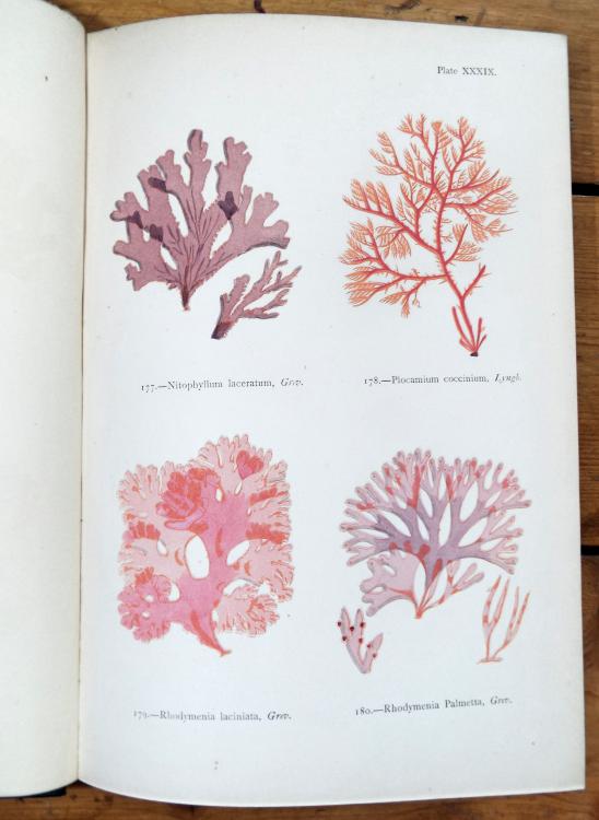 6 volumes Roy8vo (7 x 10in.,180 x 260mm) original mauve stamped cloth, gilt, chips and splits to backstrips of several volumes, untrimmed, so in the tallest possible state. 250 Hand Coloured Plates,arranged 5 to a page. Very sight and occasional spotting to untrimmed edges, otherwise internally a crisp set of the Second Edition. The usual issue of the First Edition is about 6 x 8 ins, 150 x 200mm, so considerably smaller page size, with 4 figures and ruled divisions.