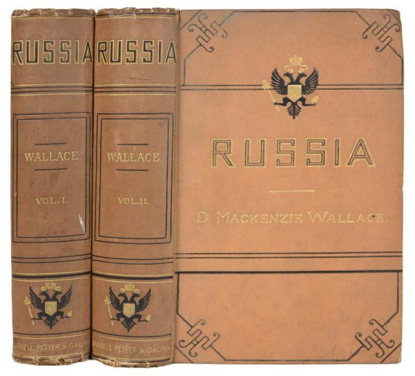 Mapping Russia's history and development for an international audience --- A scarce St.-Petersburg imprint of large format, with many interesting aspects, including an early cartographic representation of the development of the Russian empire: a large, double-page map showing the "progressive conquest of Siberia", up to the Alaska and detailing the northern coast of Russia. The rather luxuriously printed publication intends, in a very didactic way, to familiarise European readers with the history, geography, population, structure and economy of a country that had always seemed to have been a mystery to foreigners. After a brief history of the Russian Empire covering the period from 862, the work shows a genealogical table of the ruling dynasties. In the present example, the letterpressed Romanov's dynasty tree, ending with the name Alexander II, is expanded with manuscript notes of a 19th century reader, who updated it with the names of the spouse of Alexander II and their children. The large double-page tables and maps include a wealth of information on Russian geography, flora, fauna, trade, peoples etc. Of special note are the insets on the Don Cossacks, Georgia, Caucasus and the American colonies. Unusually the work includes a bibliography, mentioning a majority of books in Russian. Uncommon: only one example in the USA (Ohio) according to WorldCat, which lists 11 copies overall. Provenance: Physical description:Folio (50.5 x 37 cm). Title, [3] pp. incl. preface, bibliography and subscribers' list, 16 double page text tables, incl. a hand coloured genealogical table and 3 hand coloured engraved maps. Contemporary half straight-grained green morocco over marbled boards, straight-grained green morocco label to upper cover lettered in gilt. Condition:Binding minimally rubbed otherwise a fine example. Bibliography:Brunet V, 1437; Cat. Russica W-394.